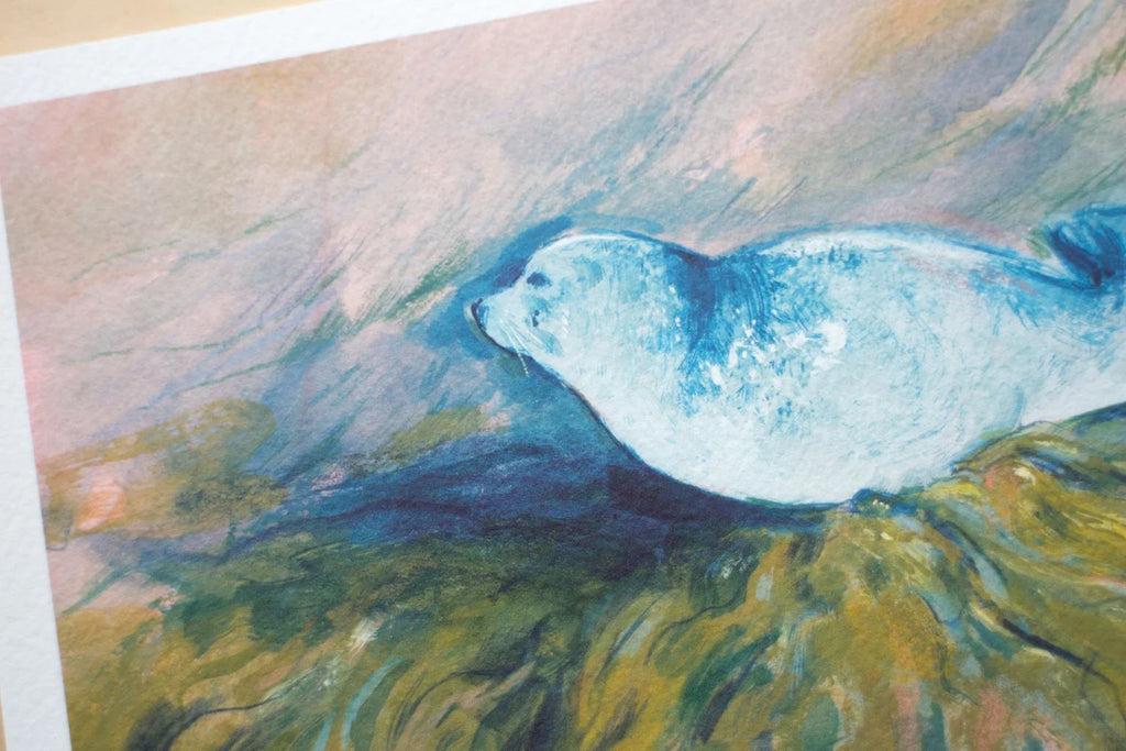 This gorgeous range of seal prints was inspired by Fiona's  trip to the Isle Of Skye where she took a boat trip and saw a colony of seals out in the wild.