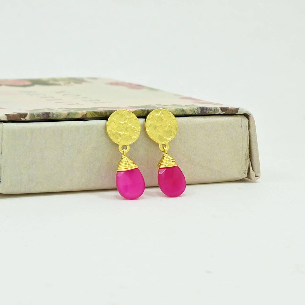 Abigail Earring Gold Plated - Pink Fuchsia Onyx