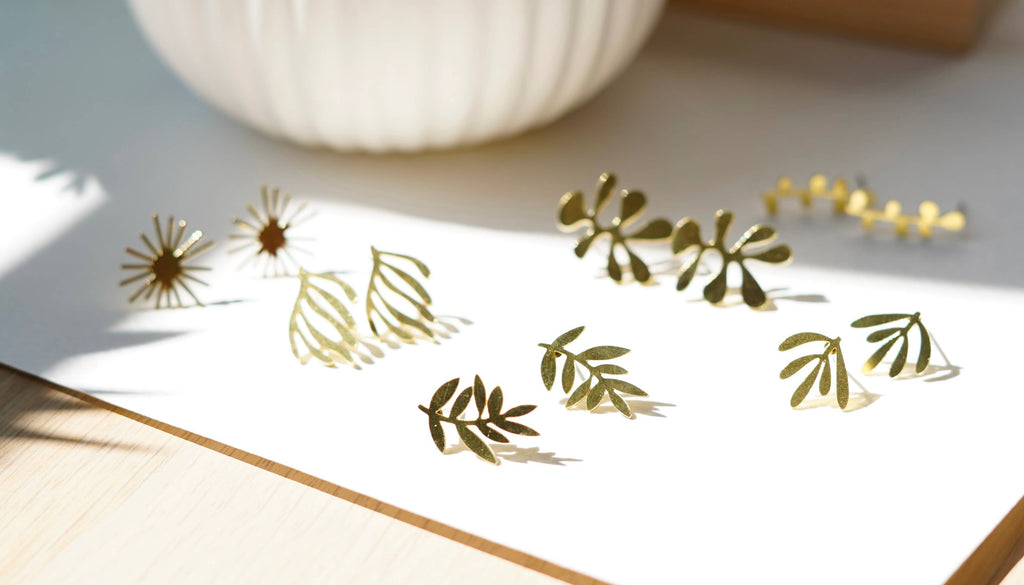 A delicate and intricate pair of leaf shaped stud earrings reminiscent of a flutter of leaves falling. With laser cut brass fronts and hypoallergenic stainless steel posts, these earrings are lightweight, easy to wear and look oh so pretty.