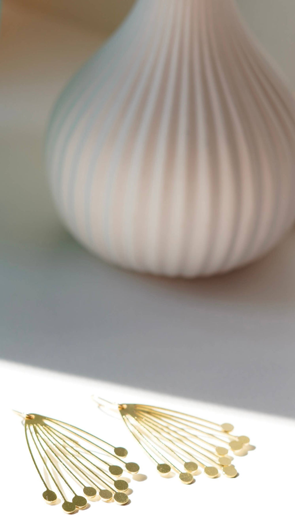 Inspired by the seed heads of summer flowers, ready to scatter for the year ahead, these earrings are delicate and pretty. The brass laser cut motif is large and eye-catching, and is hung from a gold plated earring hook.