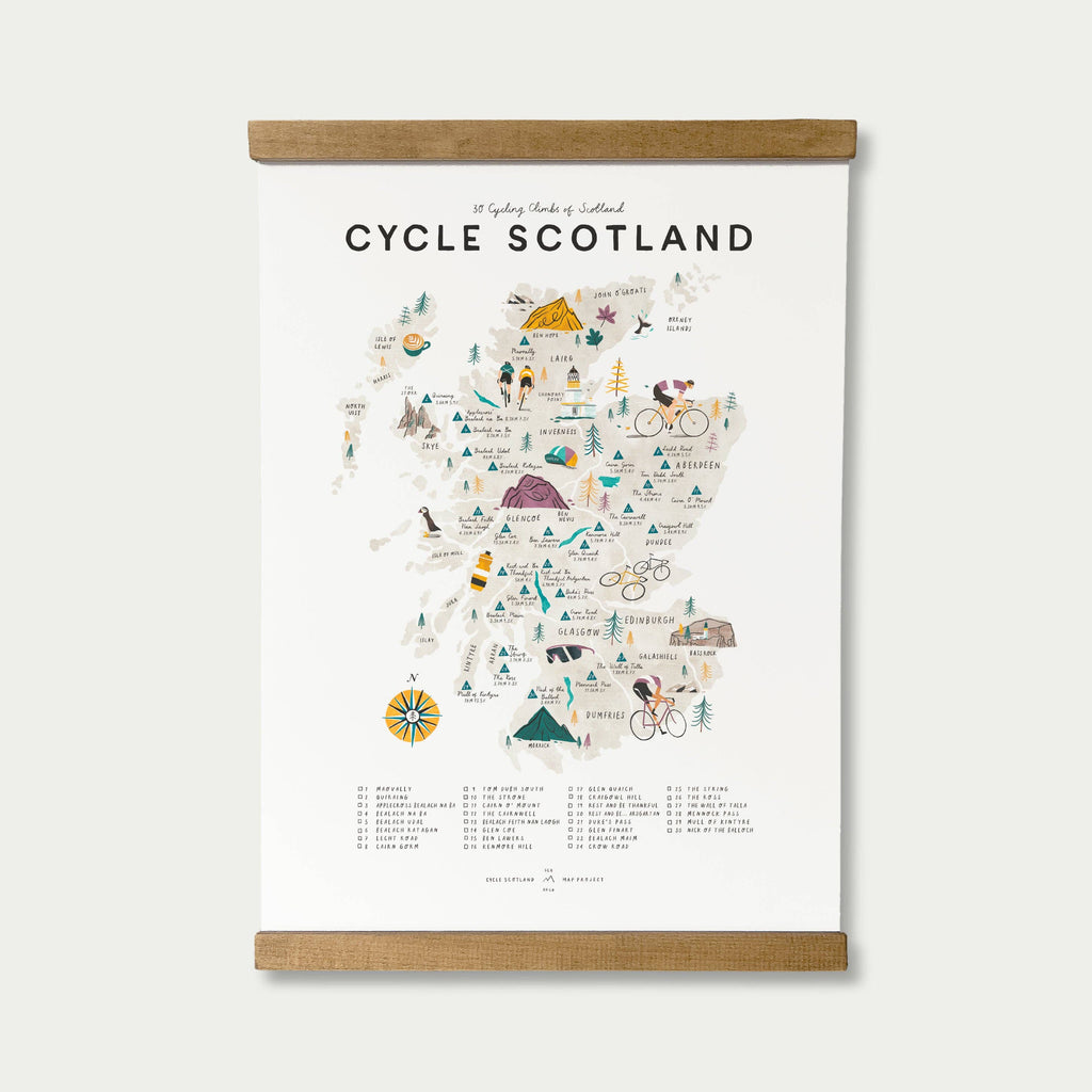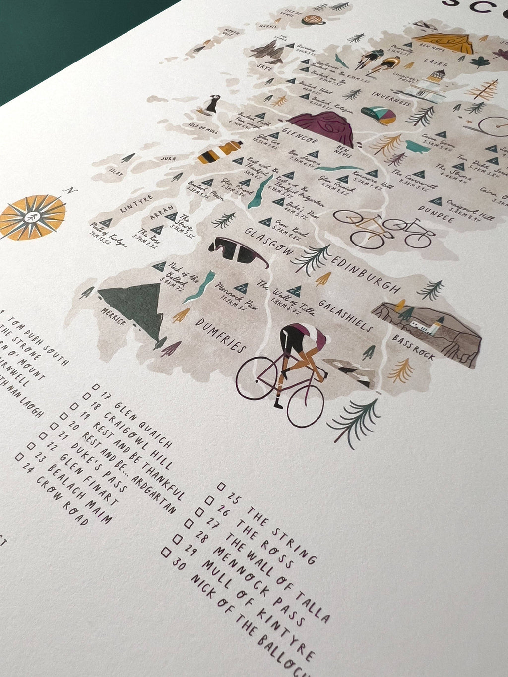 30 Cycling Climbs of Scotland by Oldfield Design Co Providing inspiration on the most iconic cycling climbs in Scotland and tick off your achievements along the way. The perfect gift for those who love cycling or want to start exploring Scotlands best cycling routes.