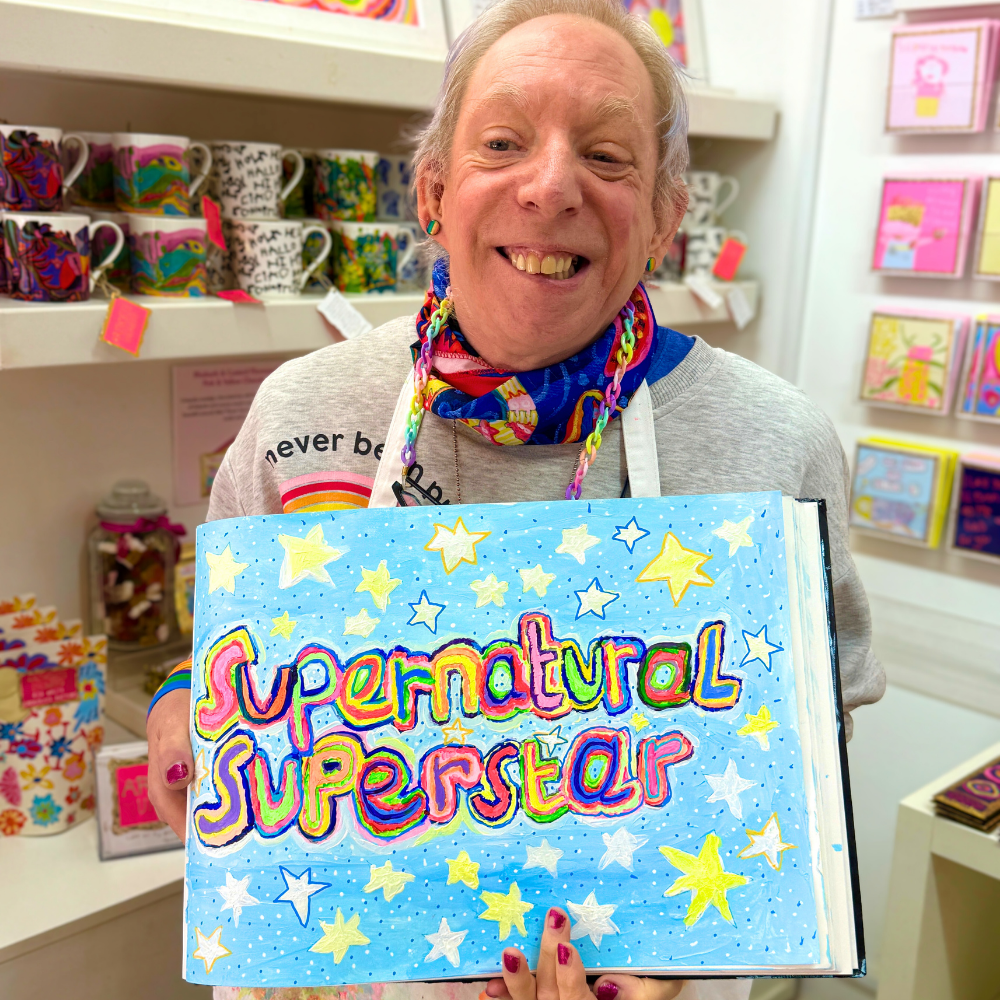 25g grams of pocket-sized deliciousness, presented in a recyclable paper envelope that features Stephen Thomson's bright and beautiful 'Supernatural Superstar' design and is finished with a shimmering blue foiled frame.