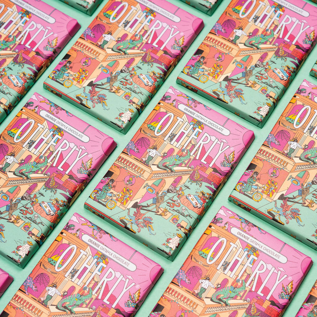 OTHERLY Orange Oatm*lk is the perfect plant-based chocolate 43% cacao content with orange essential oil: with each bite, the orange-flavoured oatm*lk chocolate bar offers a delightful balance of flavours, leaving you with a lingering aftertaste that is both indulgent and invigorating. It's a sensory journey that captures the essence of citrus and chocolate in a harmonious, blissful union, where the orange flavour is distinct yet not overpowering, adding a refreshing twist to the authentic richness of our plant-based chocolate.