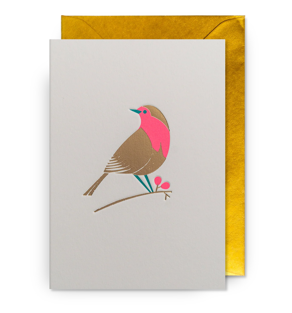 Pack Of Five Gold Robin Christmas Cards
