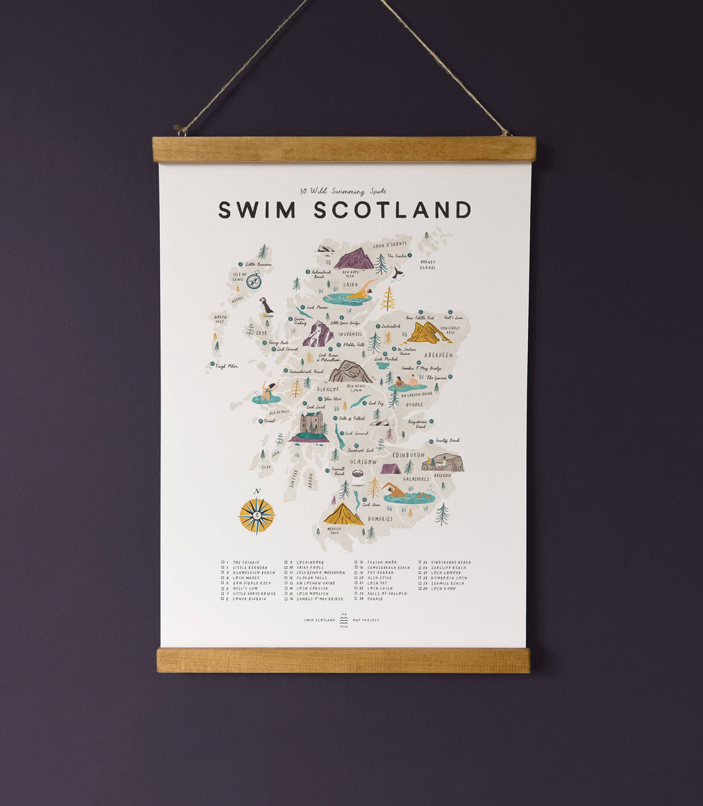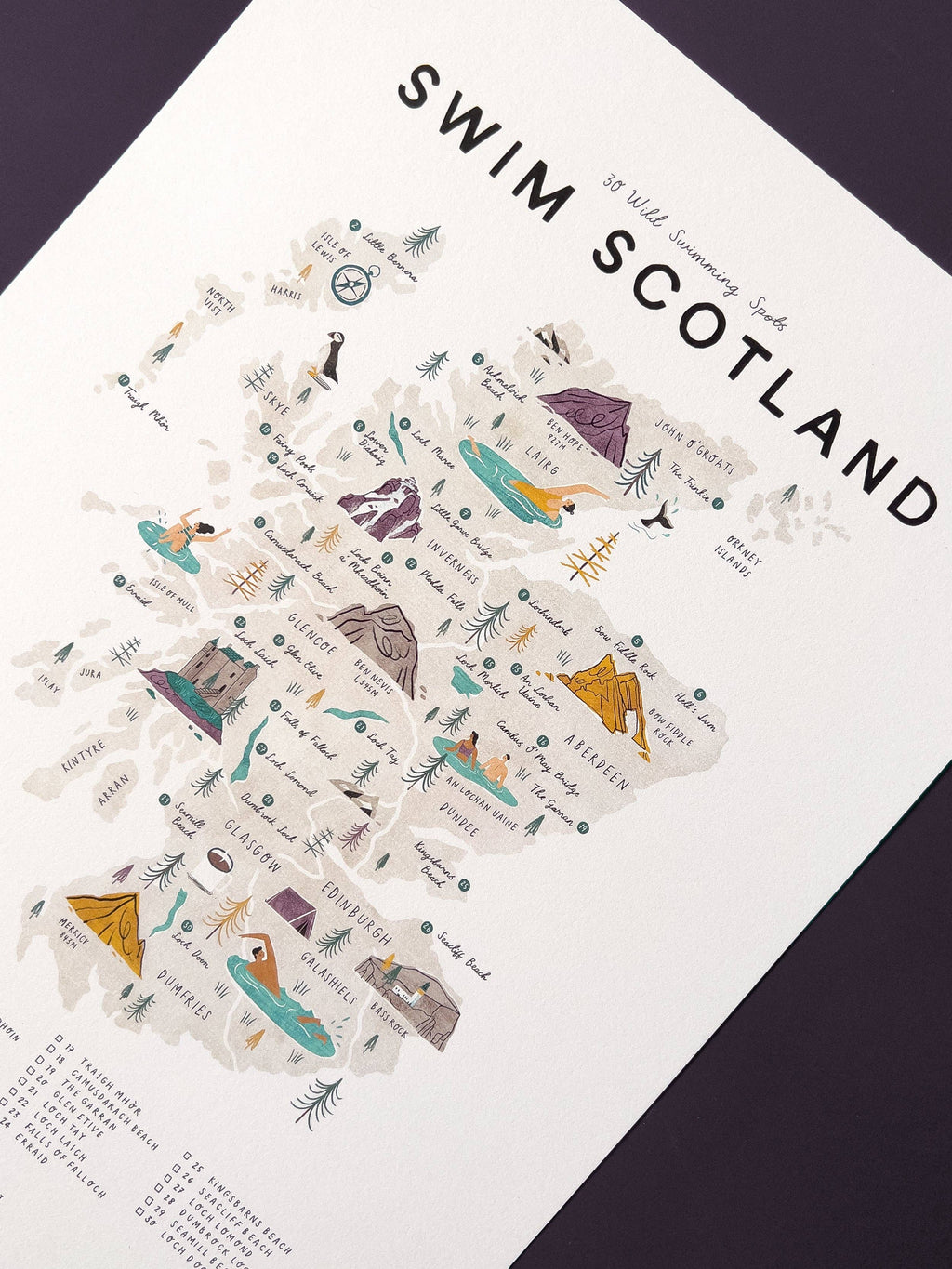 30 Wild Swimming spots of Scotland by Oldfield Design Co Providing inspiration on great places to wild swim in Scotland and tick off your achievements along the way. The perfect gift for those who love outdoor swimming or want to start exploring Scottish waters.
