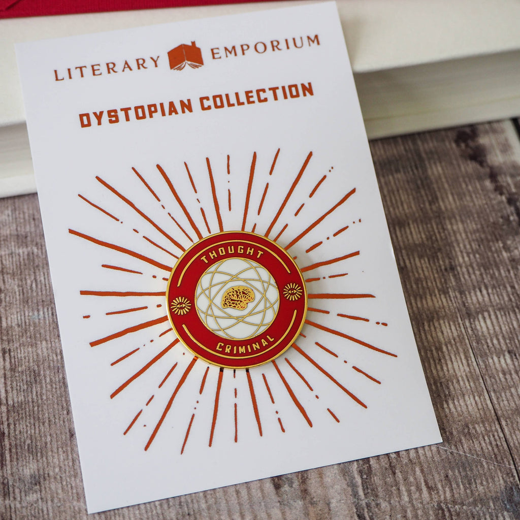 Part of our Dystopian collection, this striking red and white enamel pin takes inspiration from George Orwell's Nineteen Eighty-Four in which the Thought Police punish 'thoughtcrime' and those whose beliefs challenged the ideologies of the ruling party.
