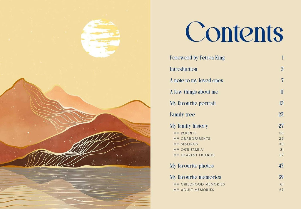 This practical and celebratory journal is a must-have for anyone wishing to plan positively for the future. Via useful prompts, it will help you share with your loved ones the milestones, challenges and everyday joys of your unique life journey. It also includes sections to help you plan your will and set out your wishes in regard to personal gifts, essential directives, funeral insurance and death notices, along with pages for vital information such as passwords and smartphone access.