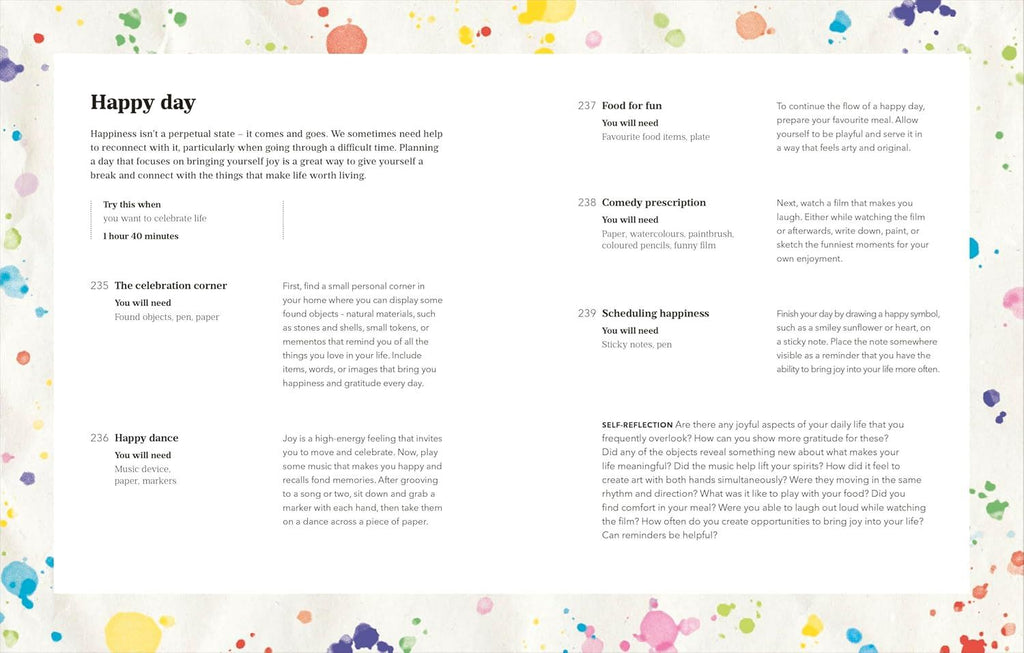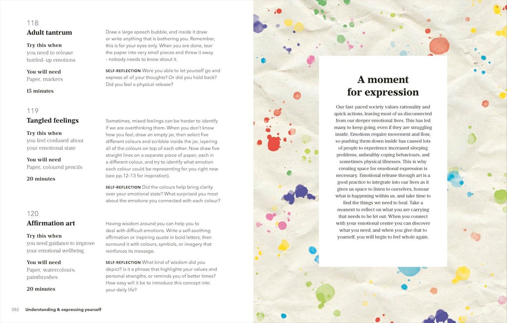 Whether you want to better regulate your emotions, find joy in the creative process, or simply seek a meaningful and hopeful alternative to idle online scrolling, art is the best medicine for feeling better, calmer and more resilient. This book provides 365 accessible and engaging exercises, each designed to help you develop self-awareness, explore your emotions, and find relief from stress and trauma. Each exercise focuses on a specific intention, can be completed with everyday materials, and is designed to fit easily into your day.