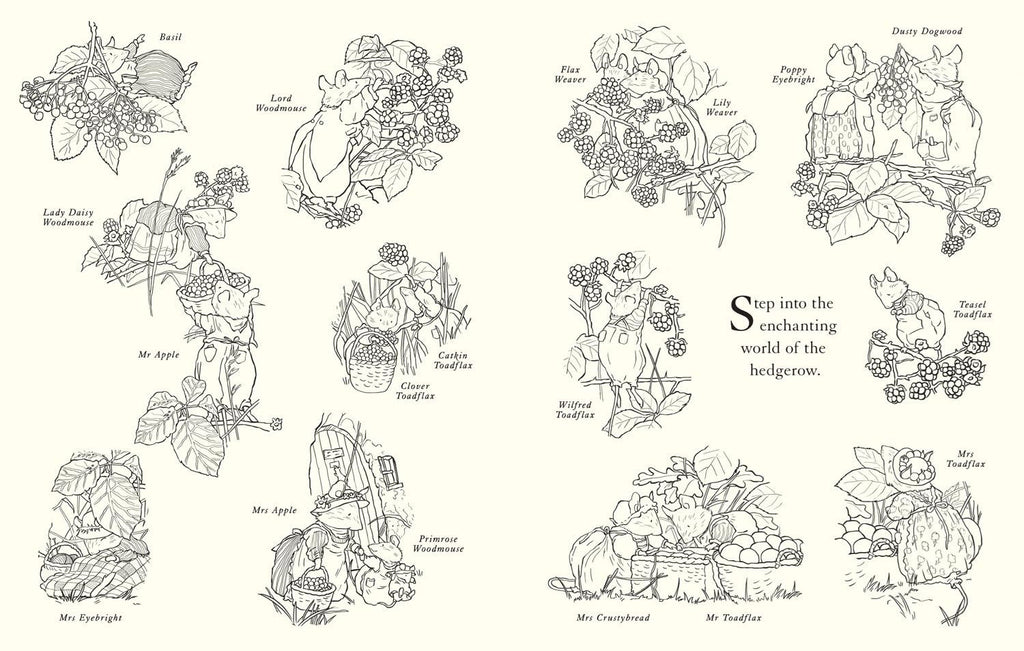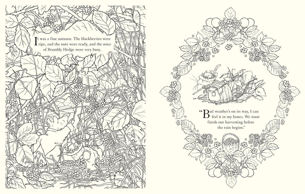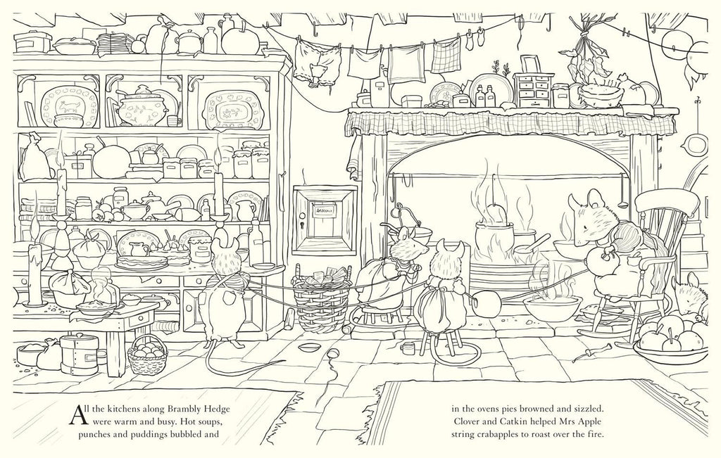 From the beauty of the seasonal changes in the hedgerow to the intricate details in the mice’s homes, this wonderfully festive colouring book celebrates the exquisite moments featured in the Brambly Hedge books Autumn Story, Winter Story, The Secret Staircase and The High Hills. In favourite quotations, detailed vignettes, full-page illustrations and stunning double-page spreads, immerse yourself in the stories and scenes from this lovable community of mice. Printed on a smooth, untextured cream paper, ideal for colouring pen or pencil.