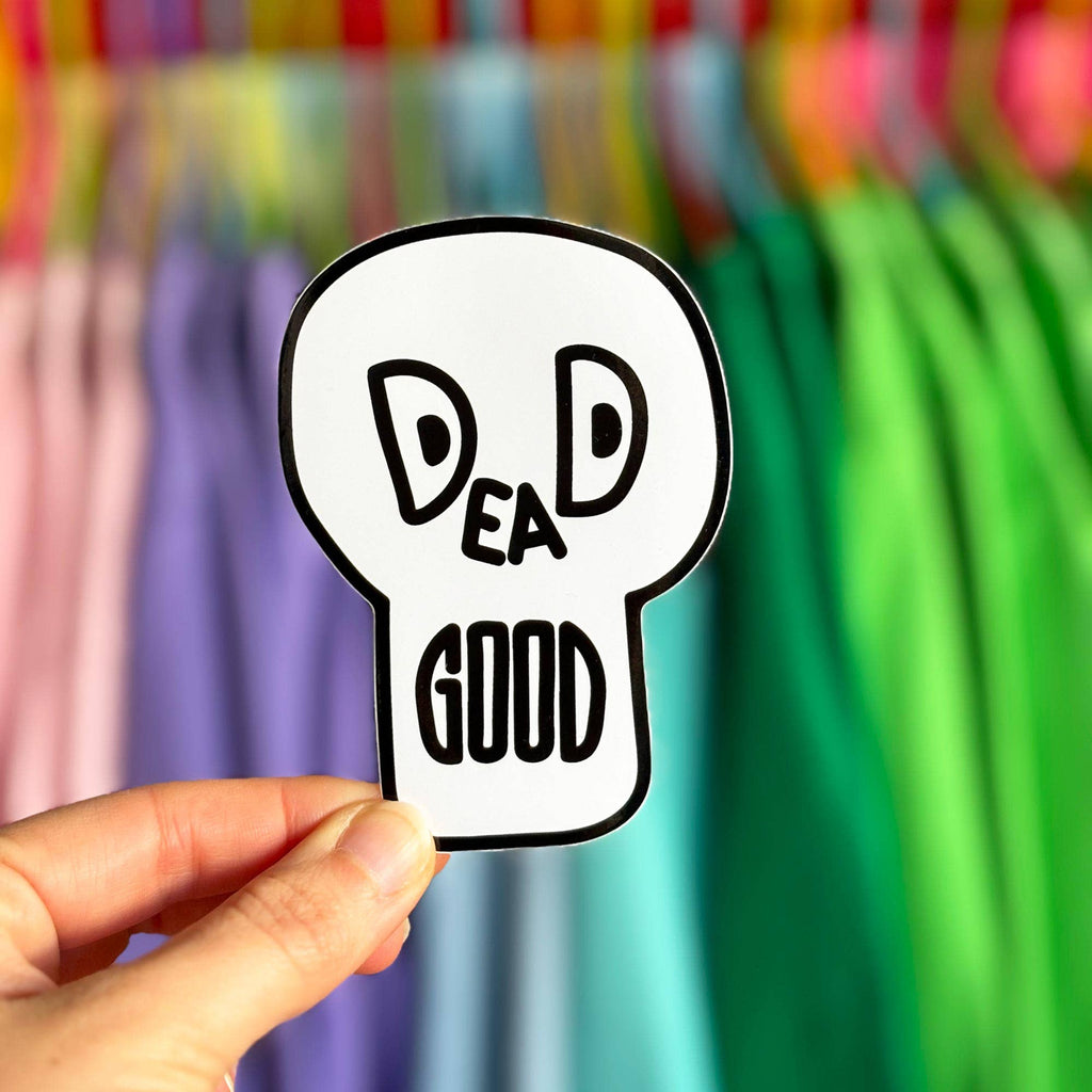 This vinyl sticker is DEAD GOOD! Jokes aside, this large skull sticker features our favourite typographic Dead Good design and is totally badass. These matt vinyl stickers are printed using UV stable, weatherproof inks, meaning they can be stuck indoors or outdoors.