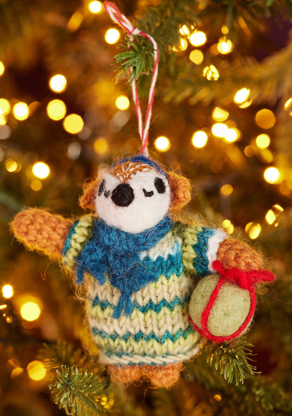 Discover our 'crafty' Christmas fox decoration, made in an ethical, eco-friendly, and sustainable way. Adorned in delightful hand-knit wool garments, this charming fox isn't just for the holidays - it can bring a touch of whimsy to your room decor all year long. Mix and match with other delightful Namaste felt characters and weave your own unique story with these lovely felt ornaments! This piece is artisan crafted by a WTFO guaranteed group member dedicated to addressing social inequalities by offering women empowering job opportunities.
