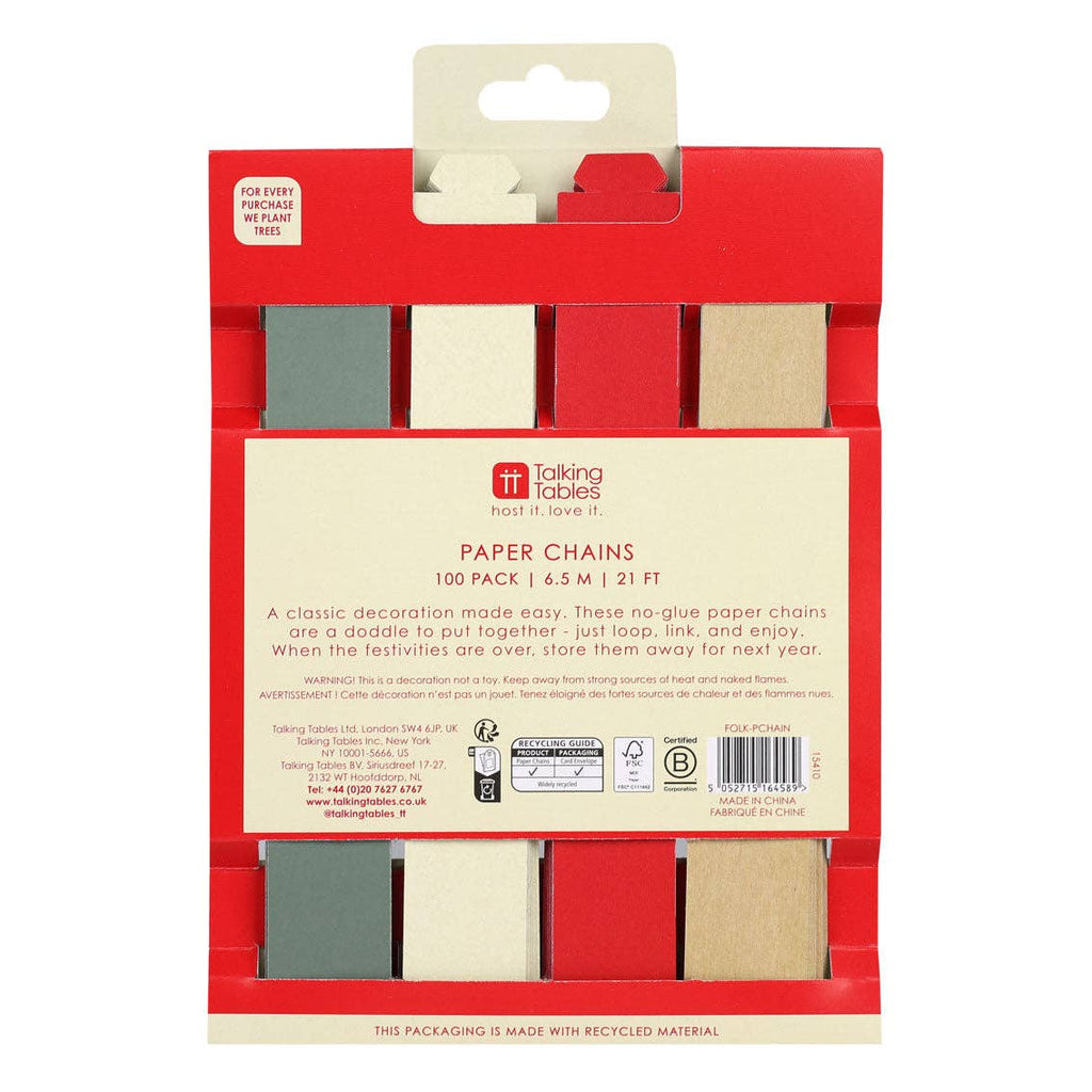 Get creative this Christmas with Folklore Paper Chains. Featuring 100 pre-cut strips in coordinating festive prints, simply curl and link to create over 6 metres of classic paper chain décor. A sustainable, family-friendly activity.