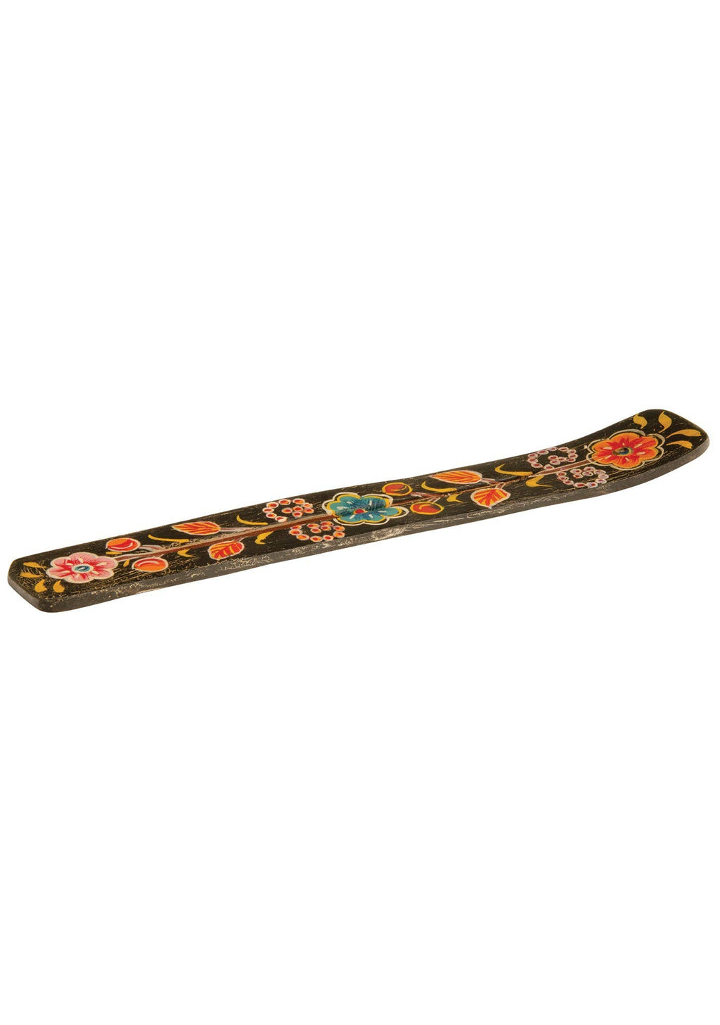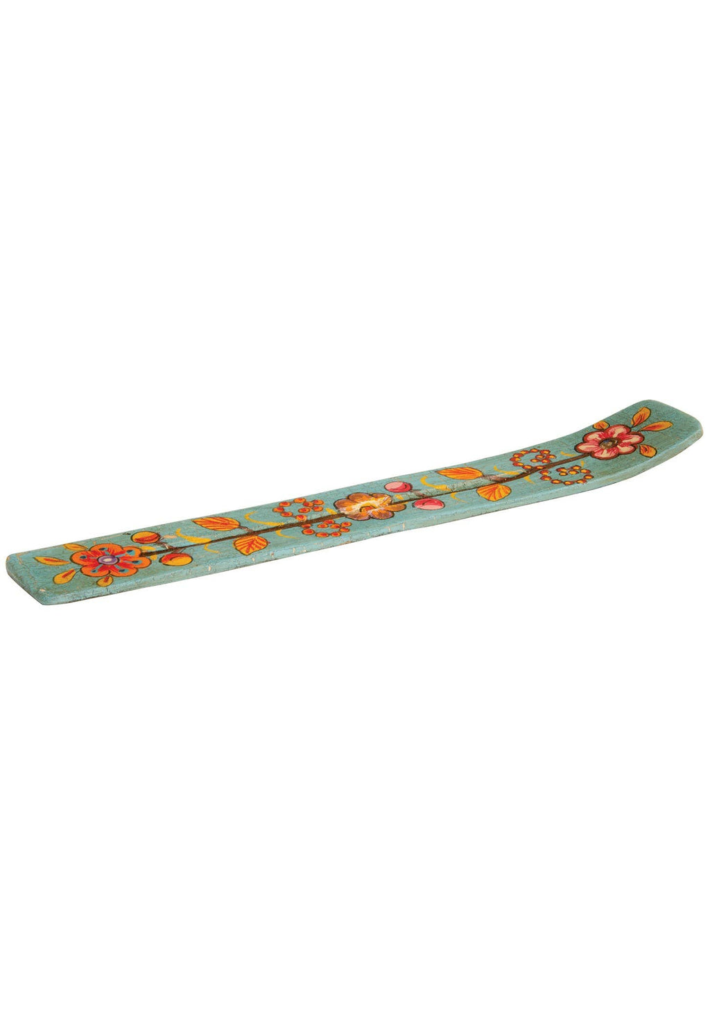 Enjoy the scent of burning incense sticks, while displaying them beautifully. This Indian incense stick holder is made from wood and hand-painted in floral themes and complementary colour schemes. A stick stand you won't want to hide in a drawer!