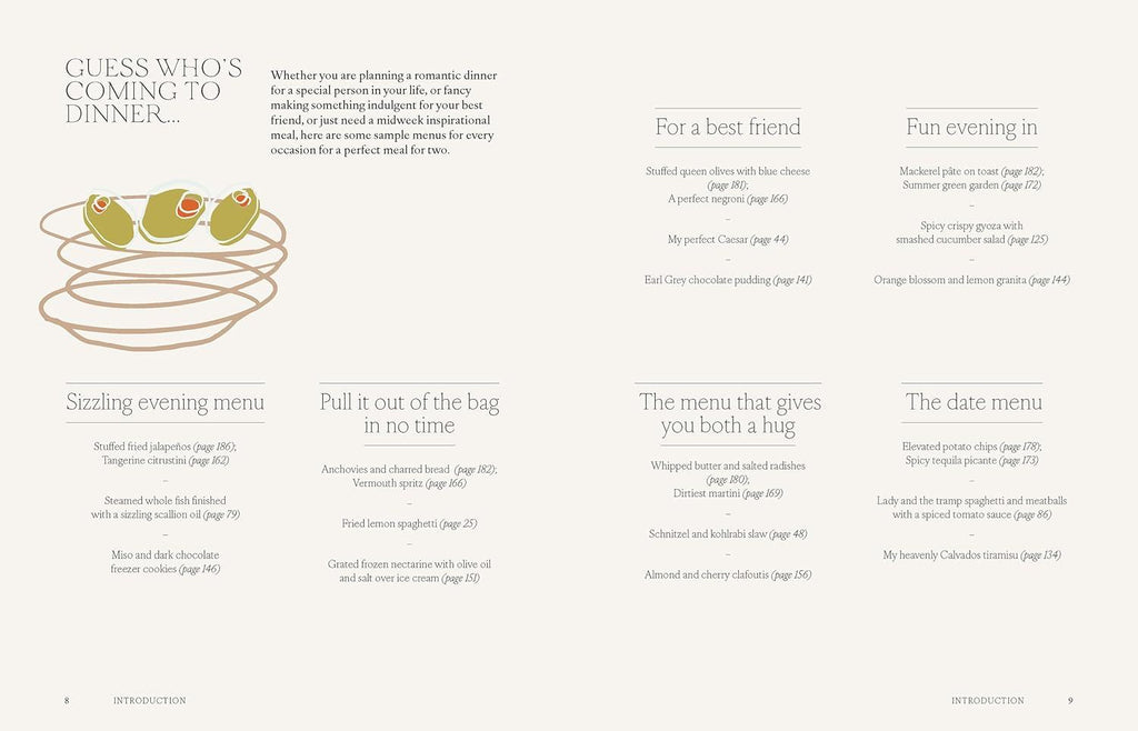 Cooking for two means feeding yourself and your partner, your best friend, your sibling, a new acquaintance. Whether you're looking for inspiration when pressed for time, want something a little luxurious for a date night, or are relearning how to cook as an empty-nester, A Meal for Two is sure to win over you and your table companion. 95 recipes include Crispy Gnocchi with Corn, Ricotta & Spinach; Schnitzel with Kohlrabi Slaw; Spicy Makhani Paneer Curry & Fresh Parathas; and lighter-than-light Earl Grey Chocolate Pudding, and Crispy Thai Banana Roti.