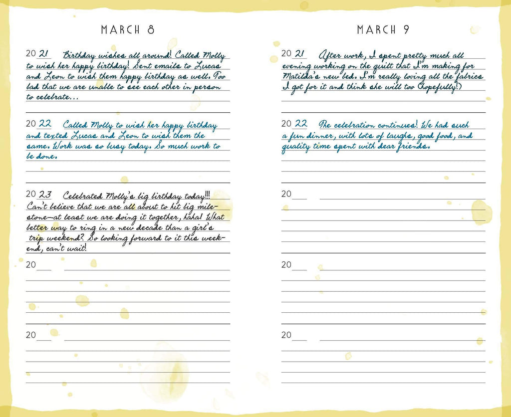• REVISIT MEMORIES AS YOU RECORD: This page layout allows you to compare today's notes with those of years past on each date going back five years. Discover what you did one, two, three, or four years ago on birthdays, New Year's Eve, or anniversaries as you fill these pages.