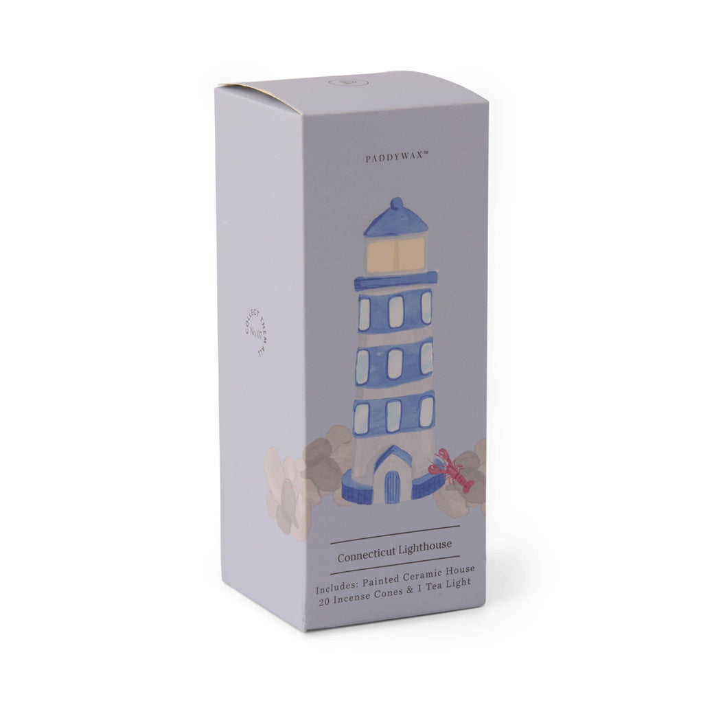Our newest Collectible Incense Tealight Holder is a Coastal Lighthouse! The Lighthouse captures the charm of a coastal view. Like the rest of the collection it has been hand painted and packaged in a printed box with 20 incense cones and 1 tea light. It has been crafted to allow incense smoke to smolder through the backside and for candlelight to flicker through the windows perfect for creating a warm and inviting atmosphere.