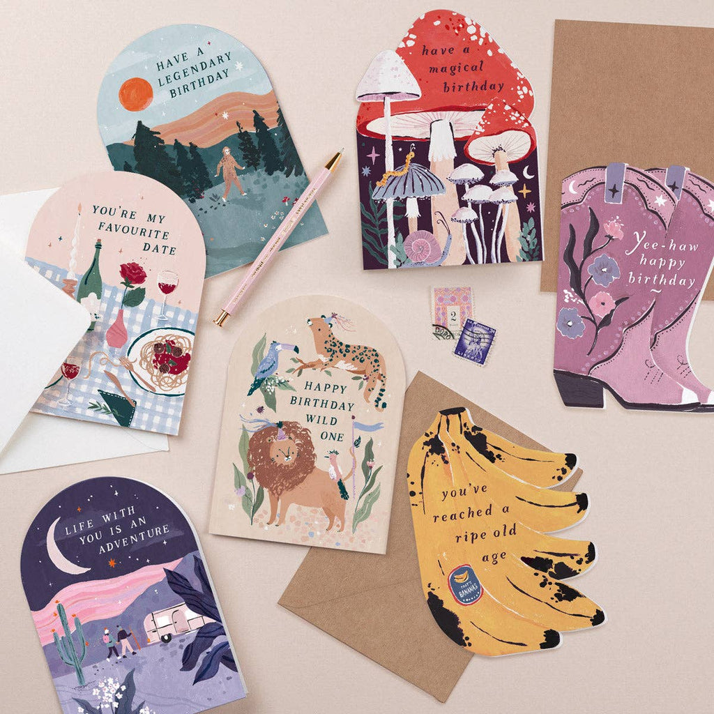 • Happy Birthday greeting card, unique die cut shape