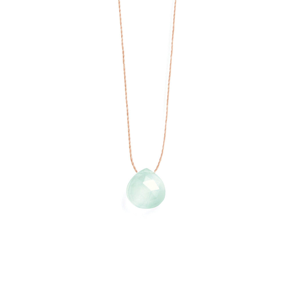 A chalcedony gemstone in Wanderlust Life's signature faceted shape slides on a delicate fine cord necklace.