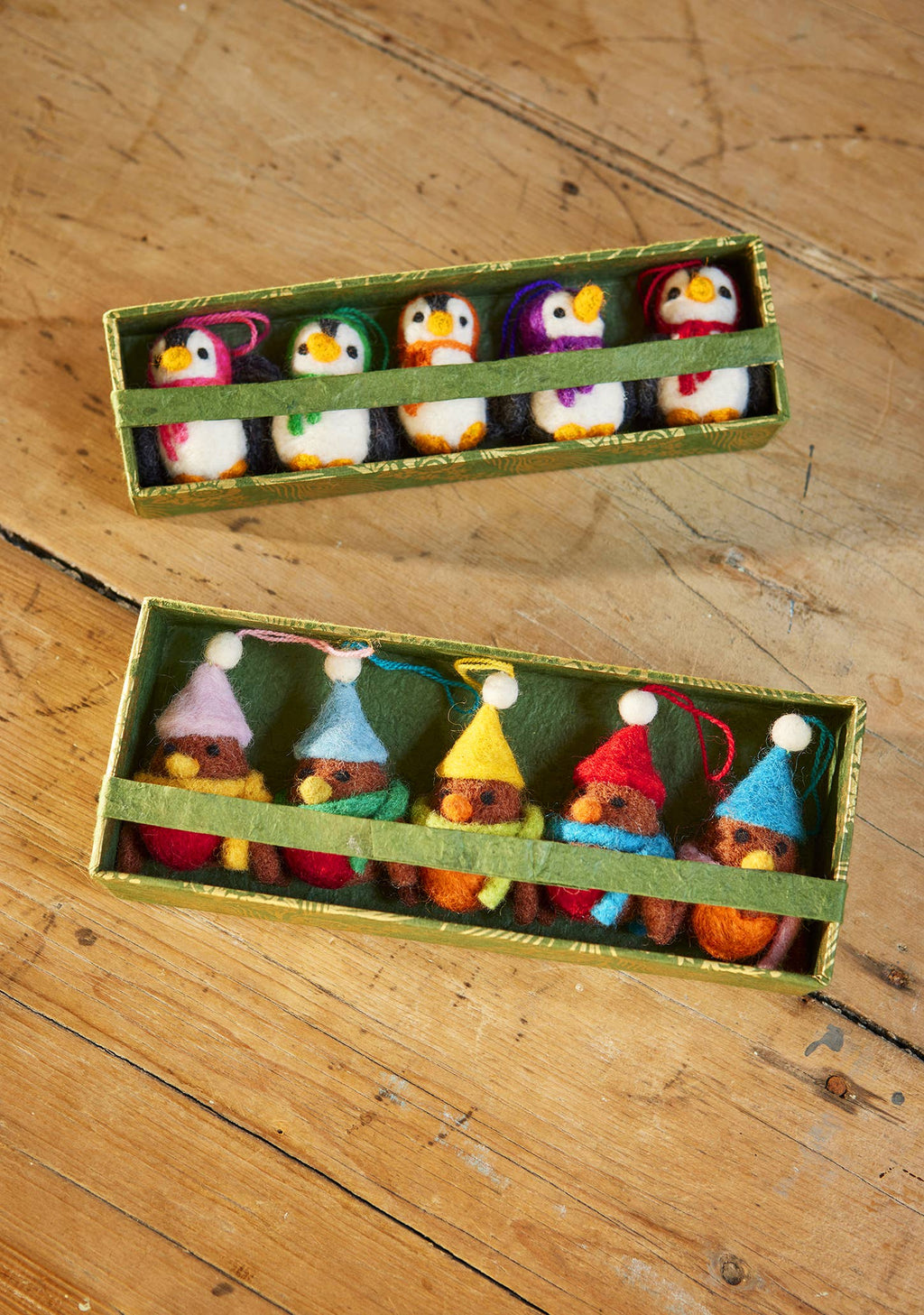 Introducing our adorable eco friendly felt penguin tree decorations wearing winter clothing and complete with a hanging thread for easy display. This charming collection is part of Namaste's new sustainable decoration range, designed in-house.