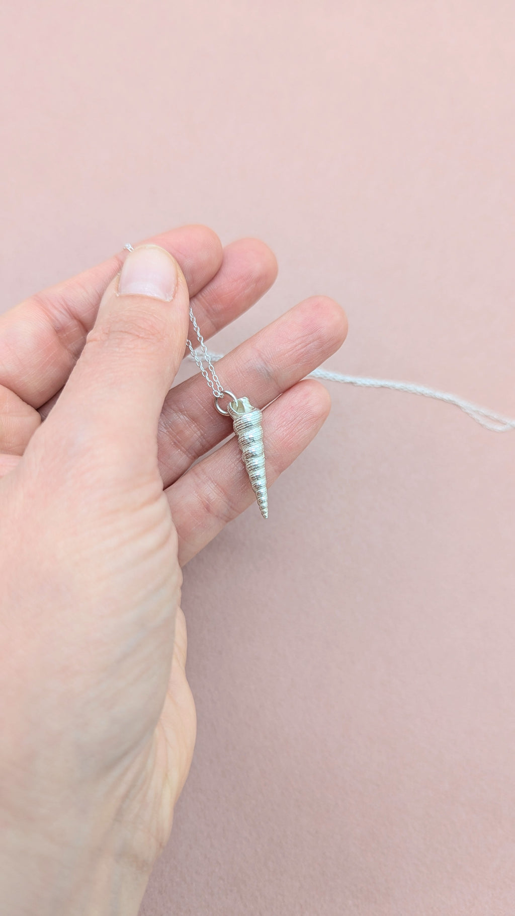 This stunning silver silver auger shell pendant have been recreated from a beautifully textured auger shell found on Nairn beach on Scotlands Moray Firth Coast.