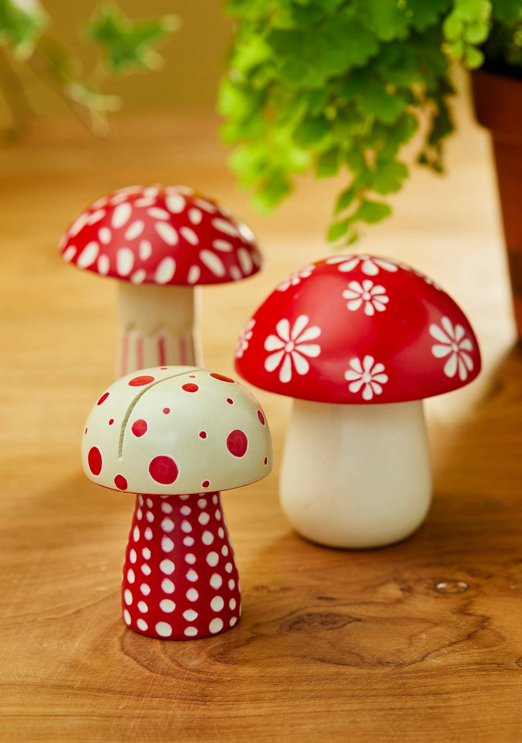 A small round opening is carved into the mushroom cap to hold an incense stick securely. Hand carved from soapstone and finished in a scheme of red and white, this glossy, fun ornament is an unusual gift or stocking filler. The hand crafted nature of this range means every piece is unique. Variations are exclusive characteristics and part of their authentic artisan story.